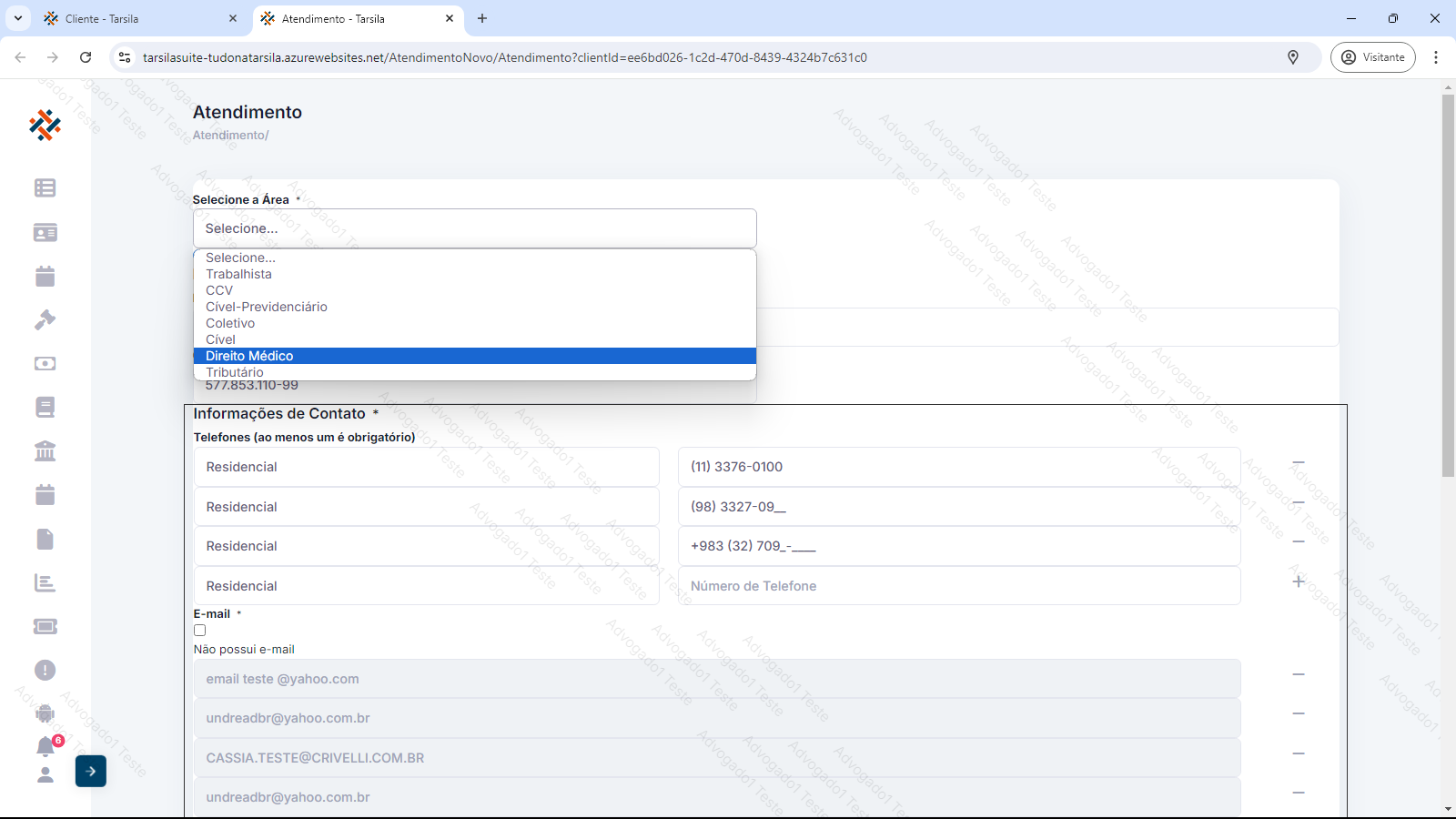 Para situações que se encaixem em Direito Médico, seleciona-se no menu “Direito Médico”.
