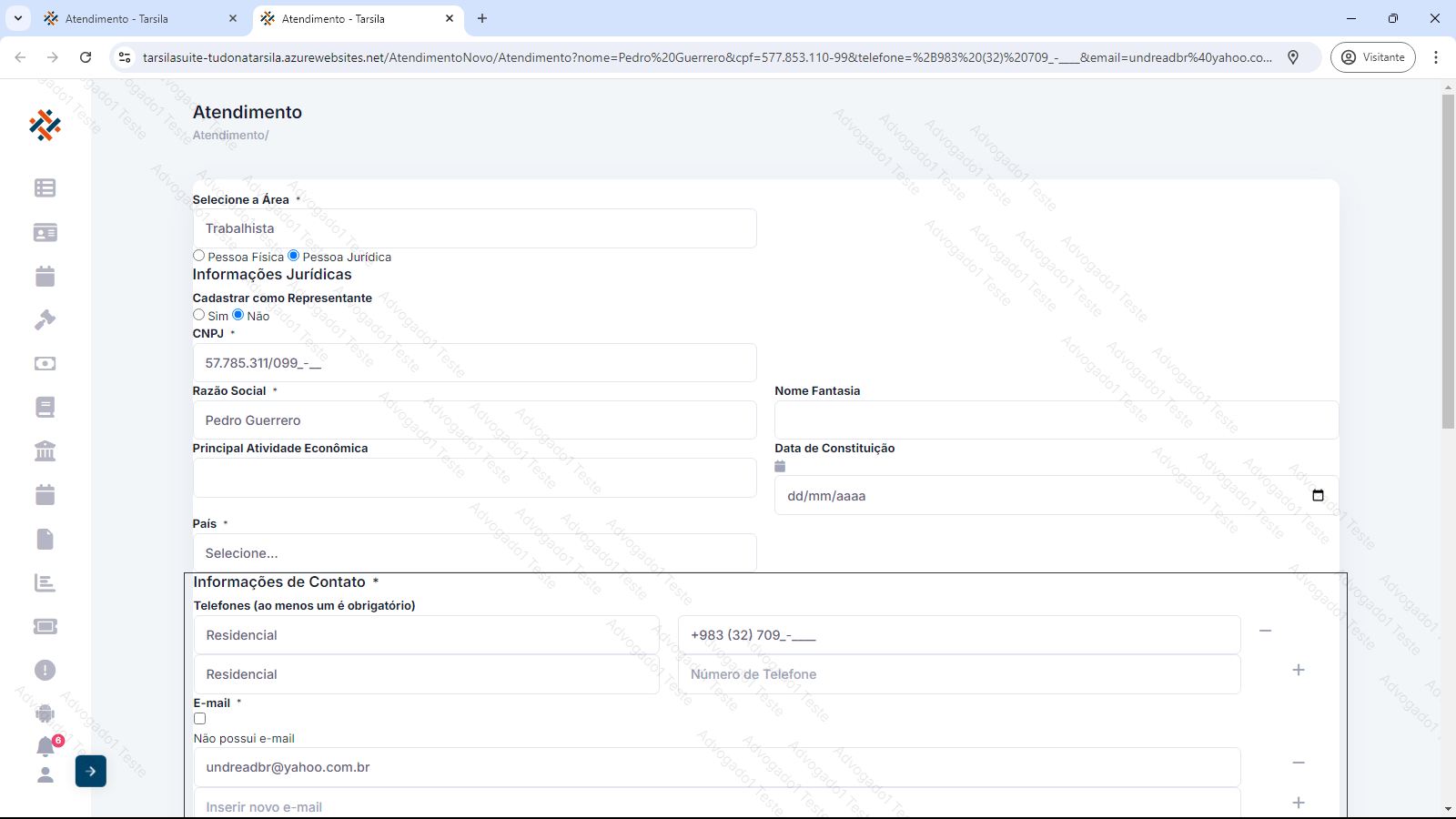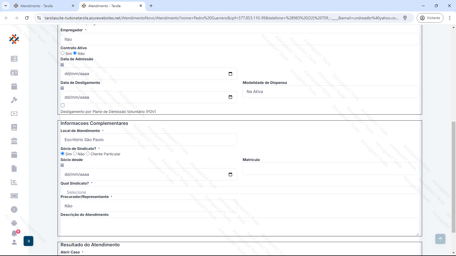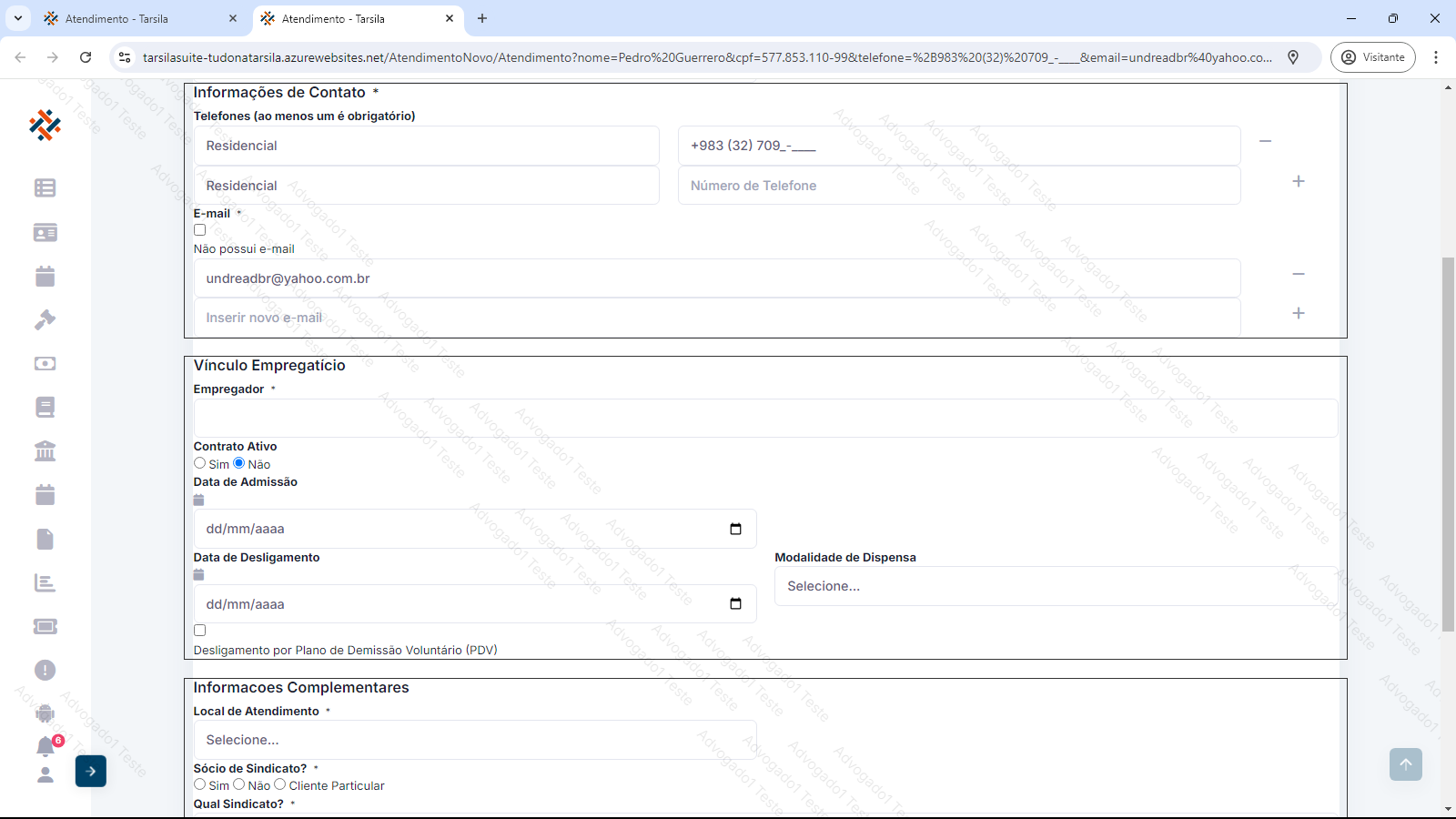 Observação: estes dados adicionais são solicitados somente se a pessoa selecionada (física ou jurídica), for diferente da previamente cadastrada no atendimento.