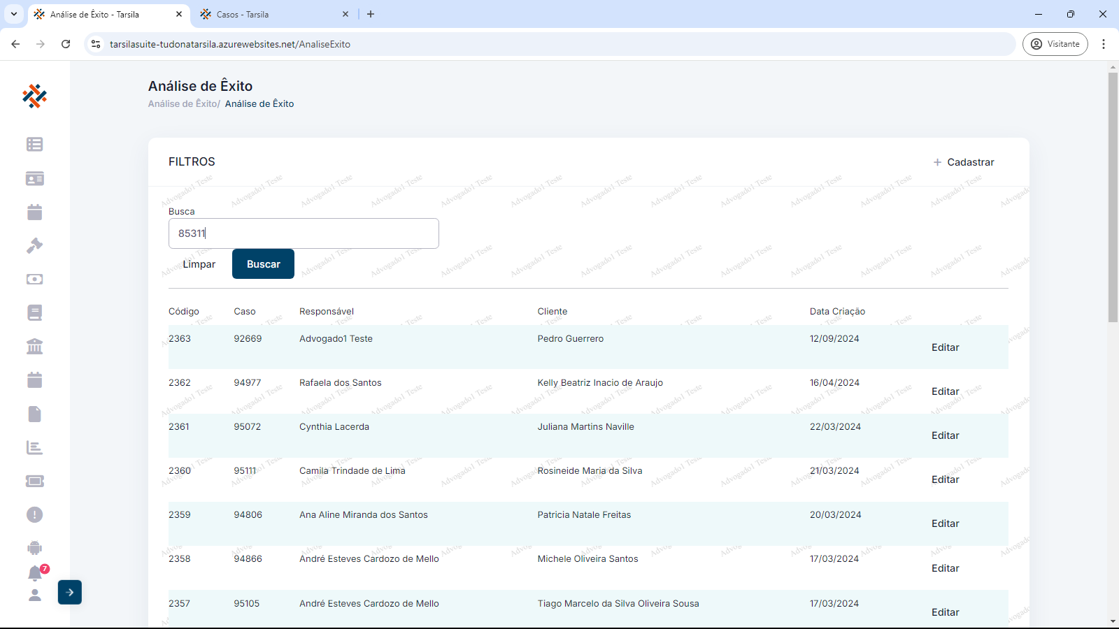 Para realizar uma consulta e/ou visualizar uma análise, insira o número do Caso no campo “busca” e clique em “Buscar”.