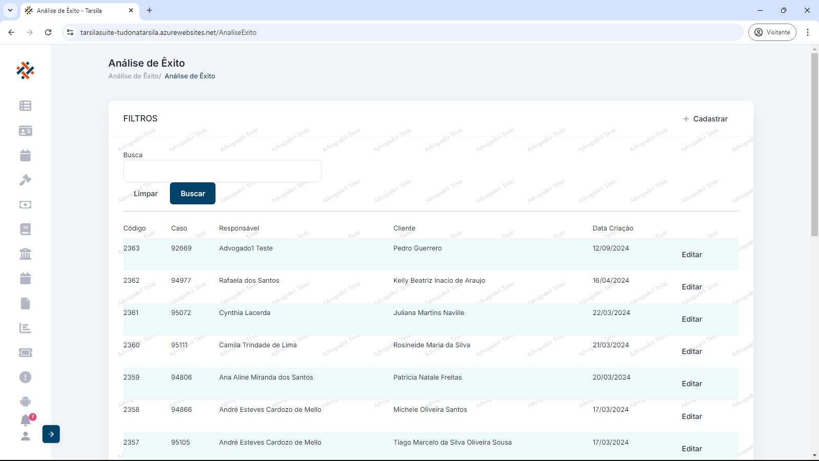 Editar uma análise cadastrada