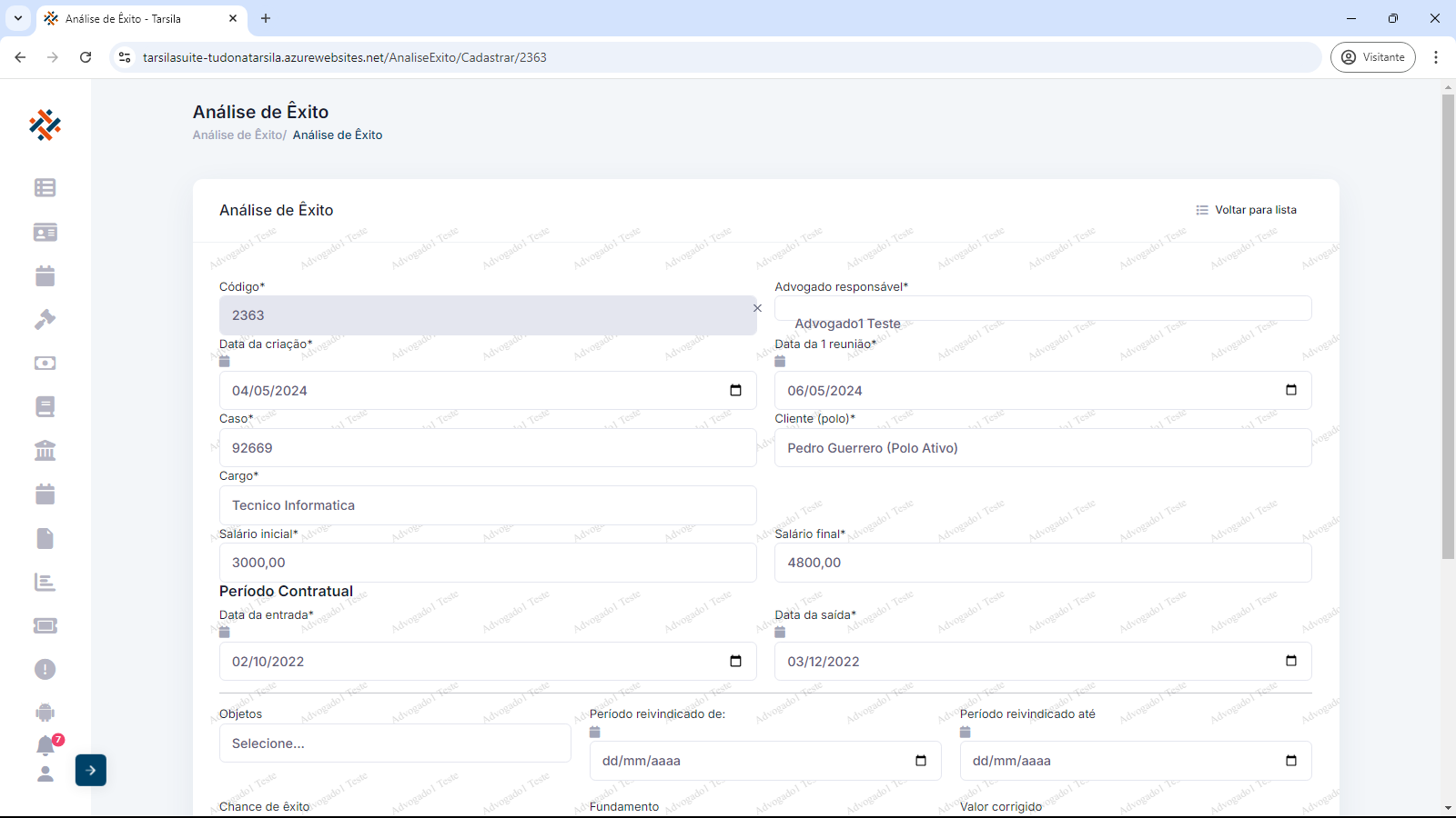 Escolhido o objeto, estão disponíveis os campos para entrada dos dados revisados. Ao final do processo, clique em “Salvar” para registrar os novos dados.
