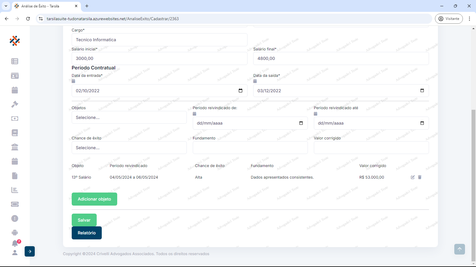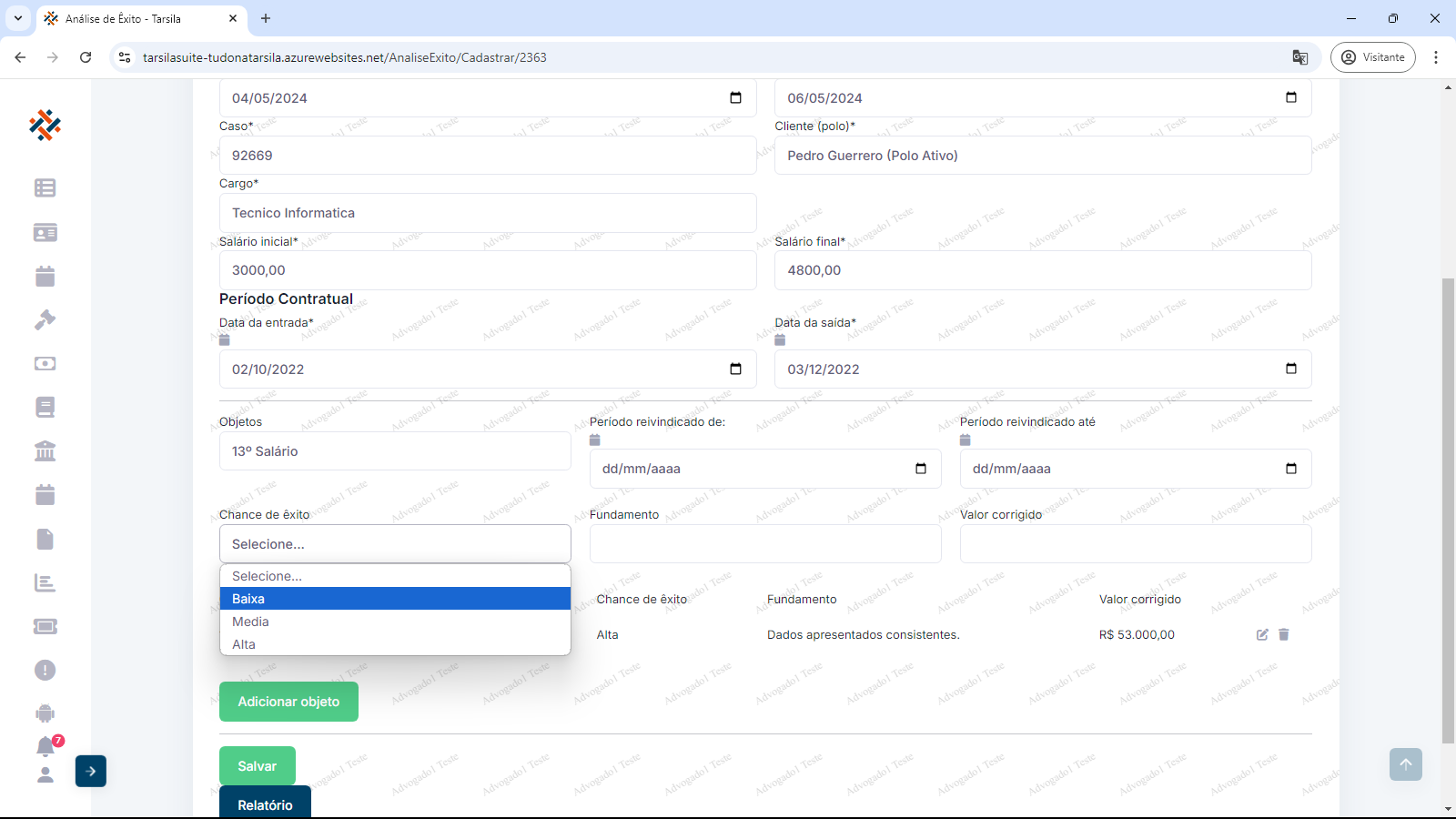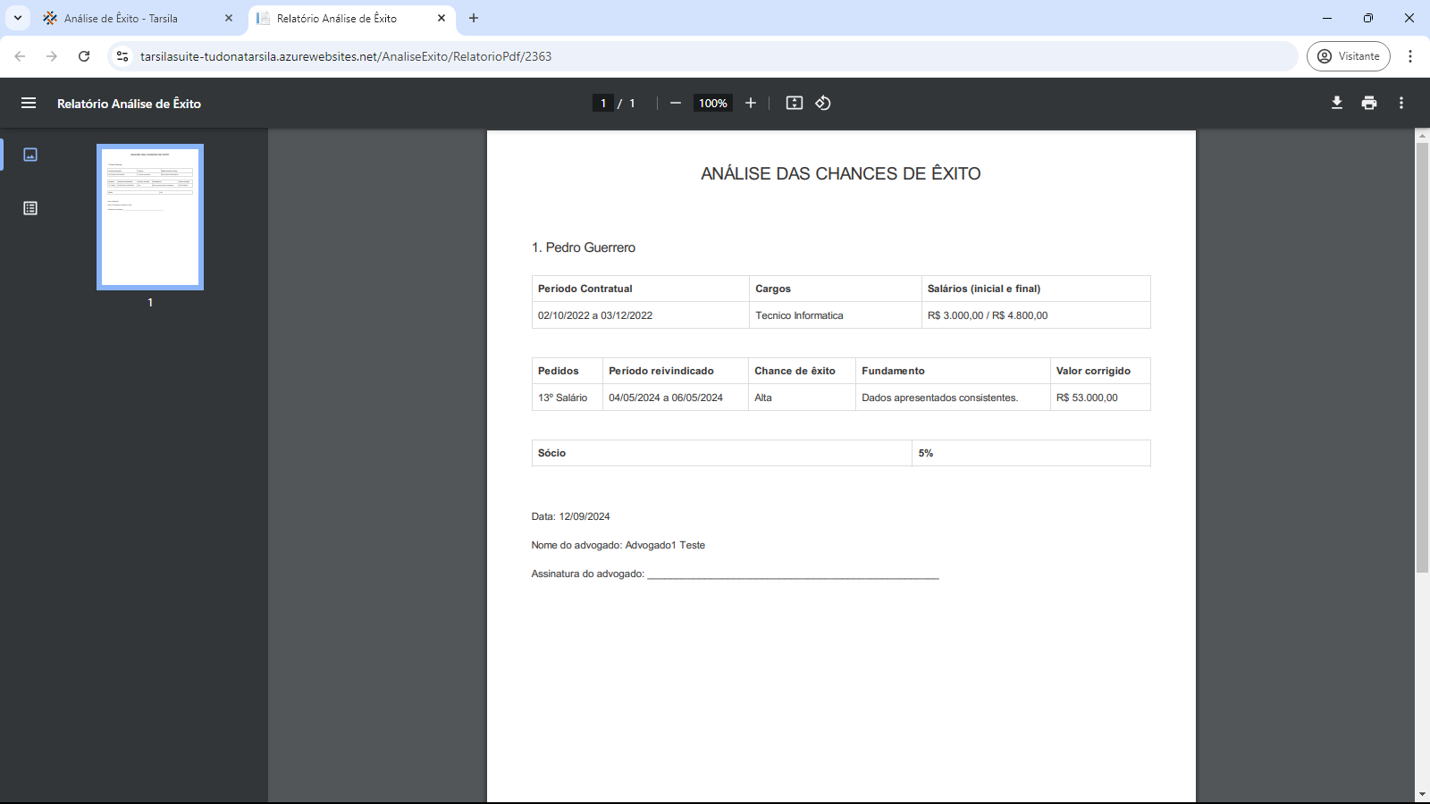 Pode-se visualizar a aparência final da análise clicando no botão “Relatório”. Abrirá uma nova aba no navegador com a tela de visualização/impressão.