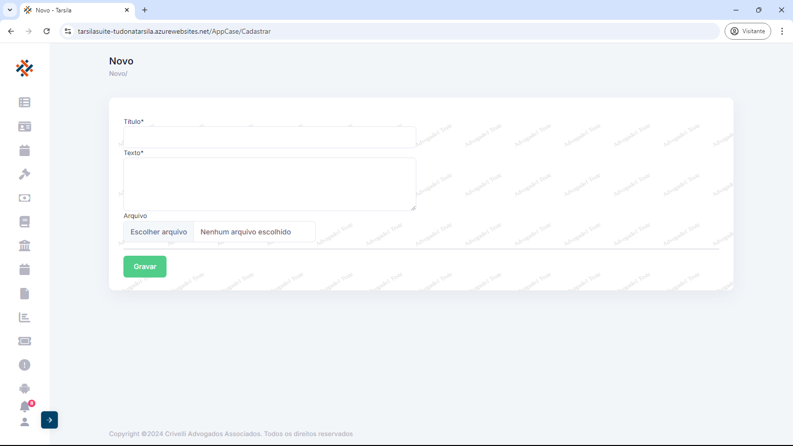 Em “+Cadastrar” há a opção de subir para o sistema, material desta categoria, preenchendo os dados de cadastro e anexando o arquivo de conteúdo.