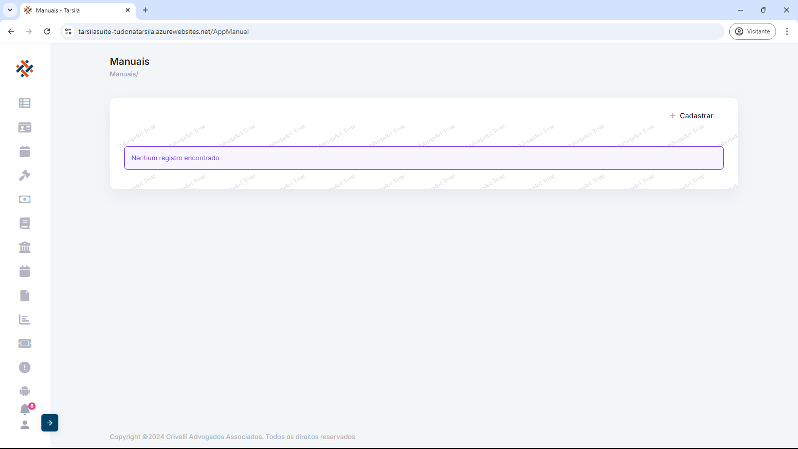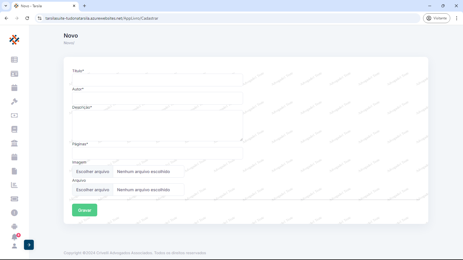 Em “+Cadastrar” há a opção de subir para o sistema, material desta categoria, preenchendo os dados de cadastro e anexando o arquivo de conteúdo.
