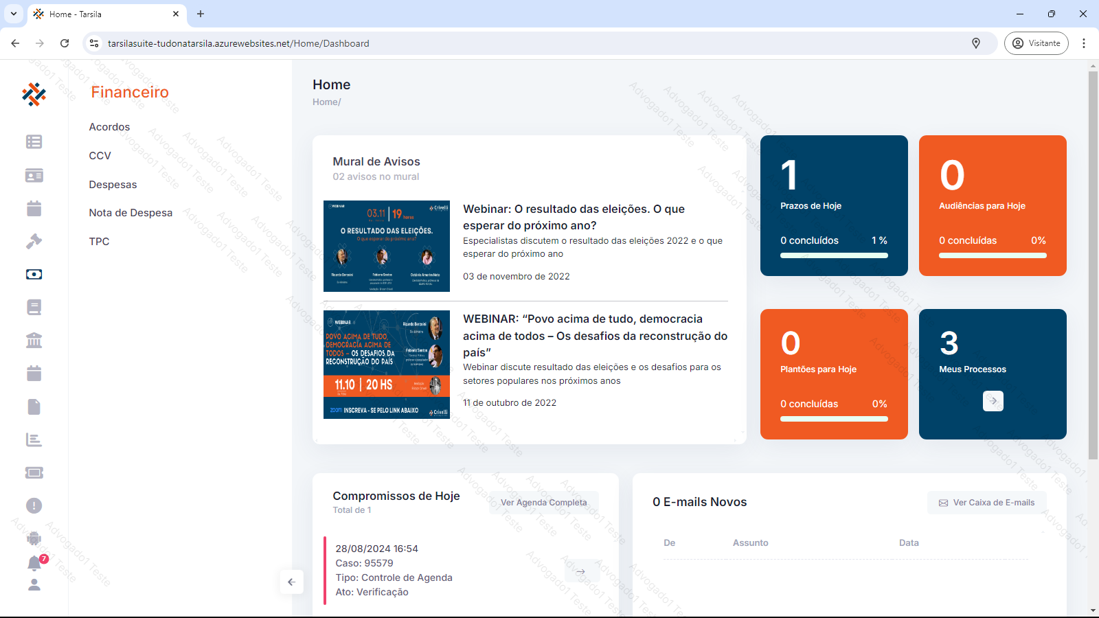 Este módulo tem por objetivo gerenciar atividades relacionados a área Financeira e suas interações com os processos. Possui as funcionalidades de gerenciamento de TPC/CCV, Acordos, Despesas e Notas de despesas.
