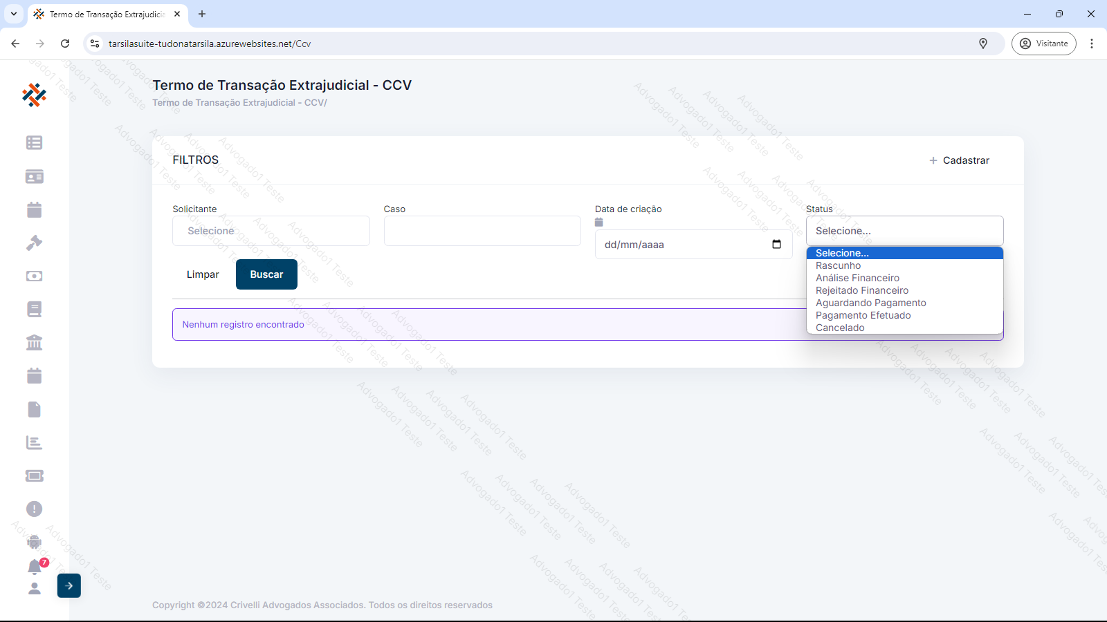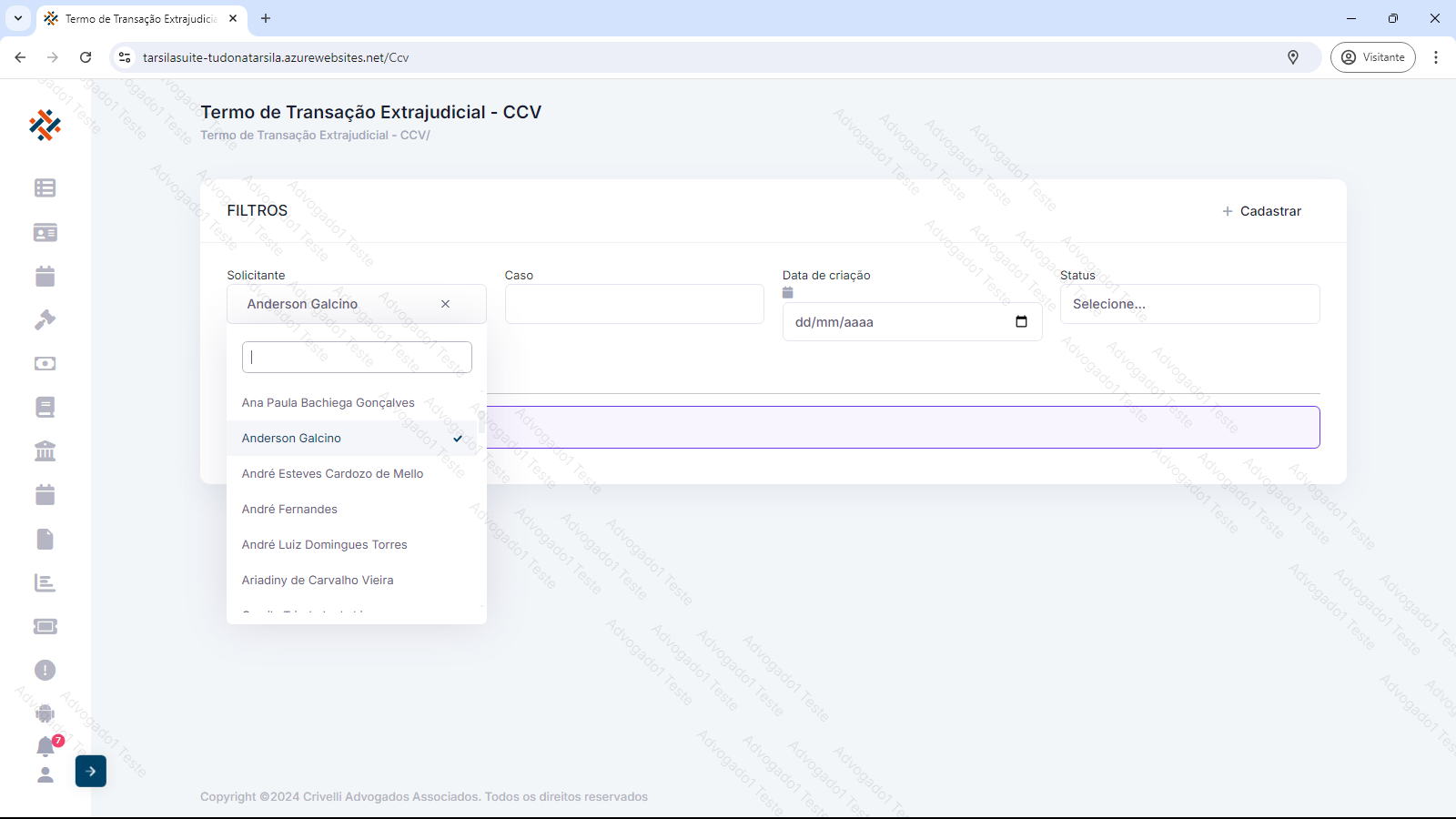 Pode-se consultar os termos existentes por solicitante/caso / data de criação.