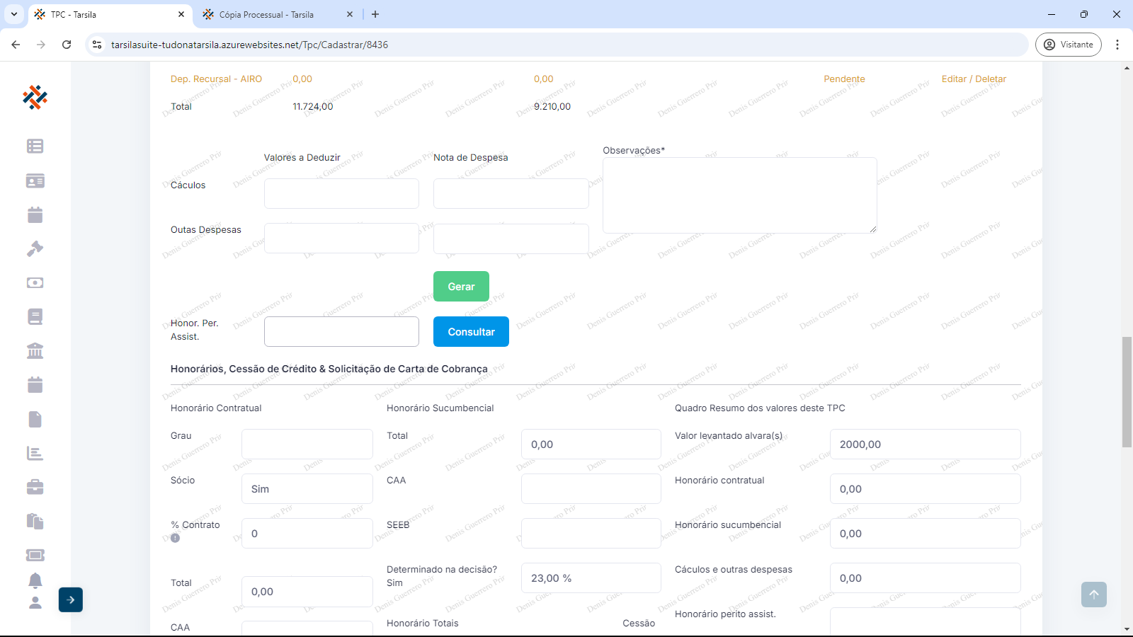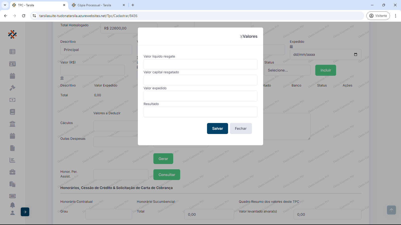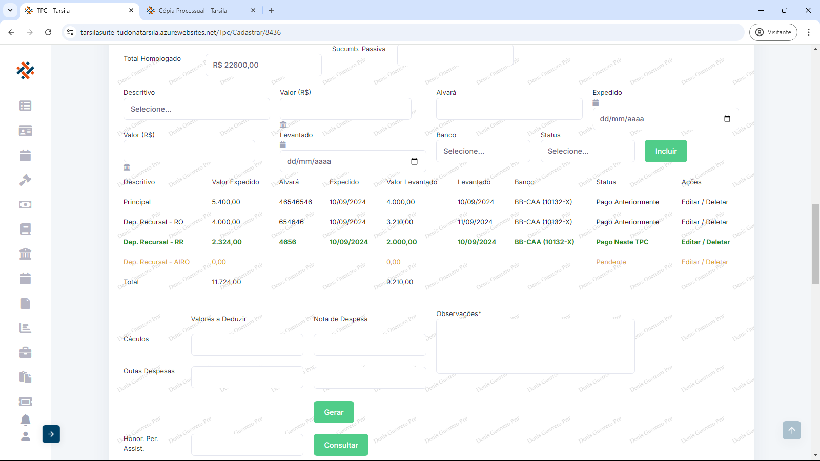 NOTA: Inserir os valores nos campos correspondentes quando forem pagos, ou seja, o valor mais atualizado que contém no processo, normalmente informada na última liberação realizada, no qual consta nas páginas finais da cópia integral do processo.