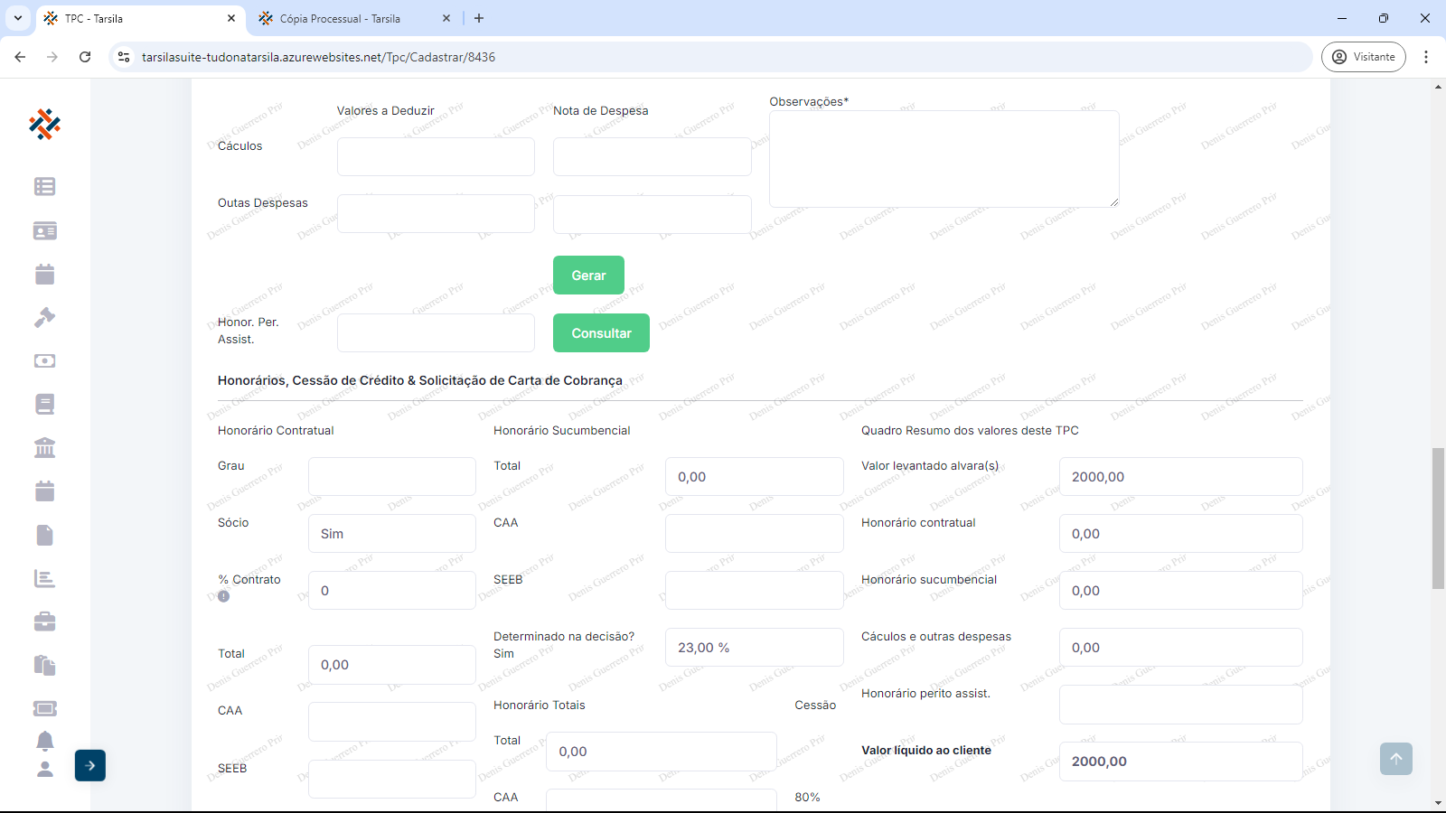 Caso necessário pode-se consultar os Honorários Per. Assist. com a respectiva opção.