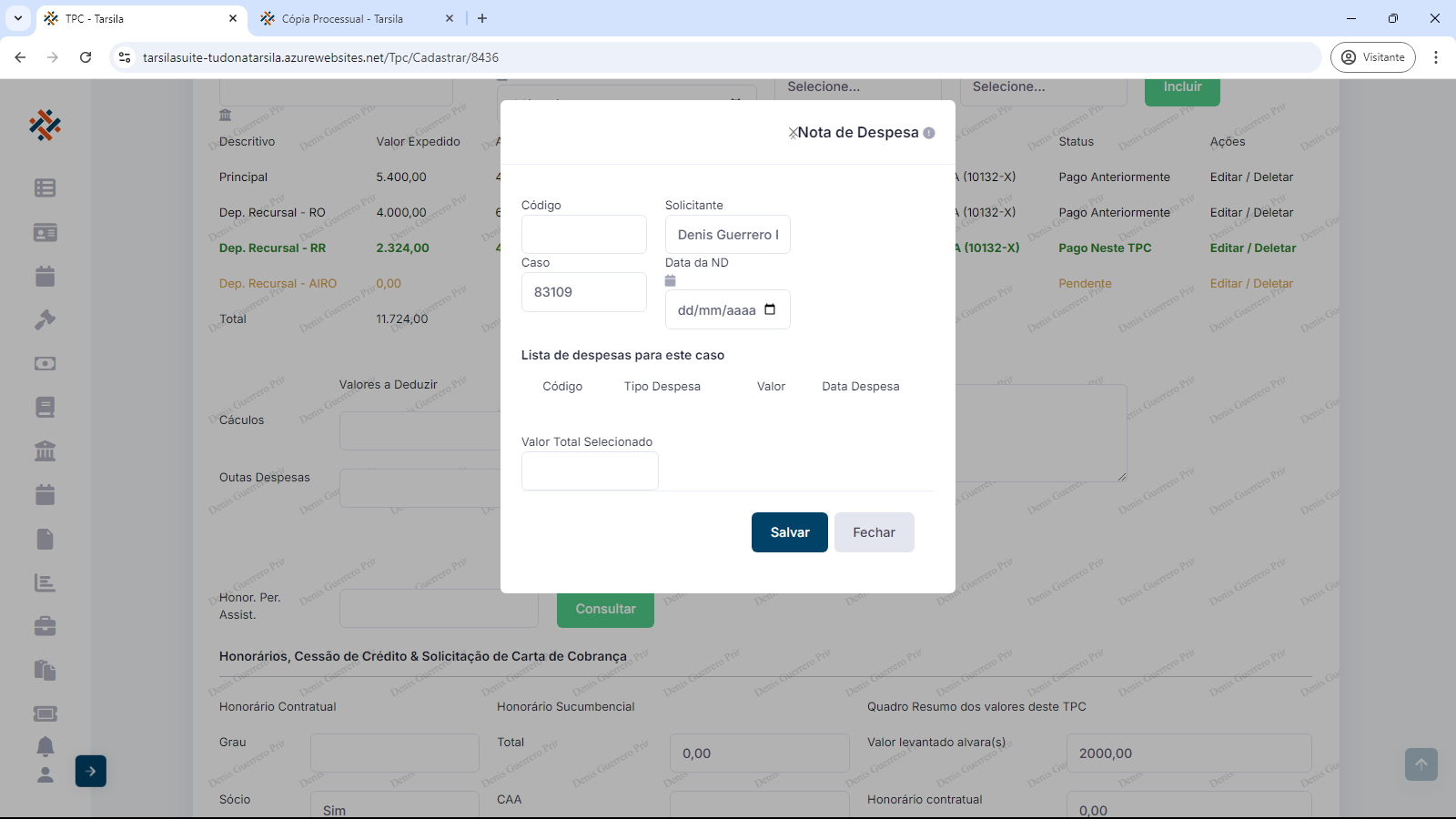 Dependendo das características do processo, ainda é possível em polo ativo/passivo, selecionar os mesmos que serão considerados no TPC. Em caso de haver mais de uma opção, escolhe-se o principal para cada um.