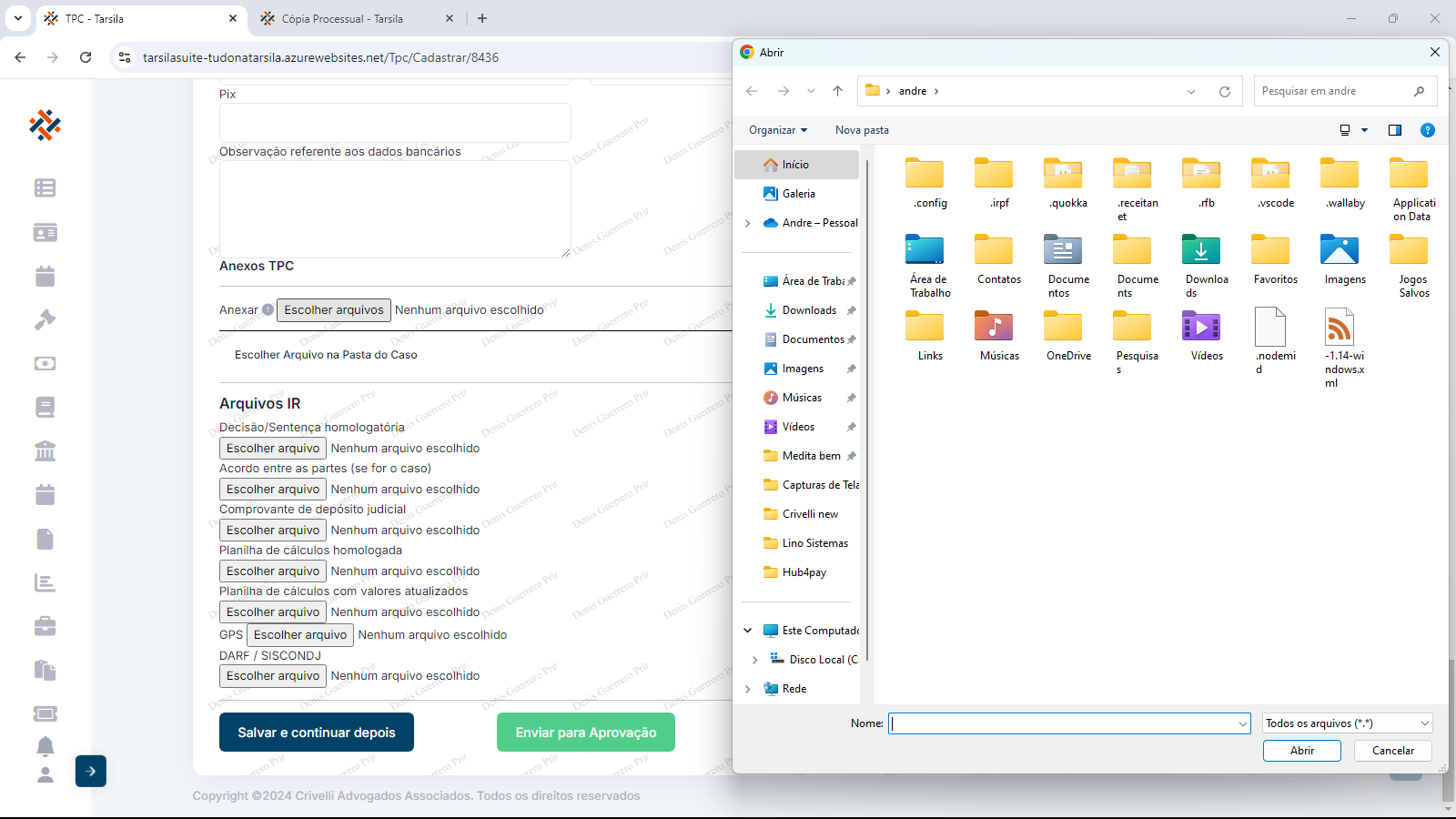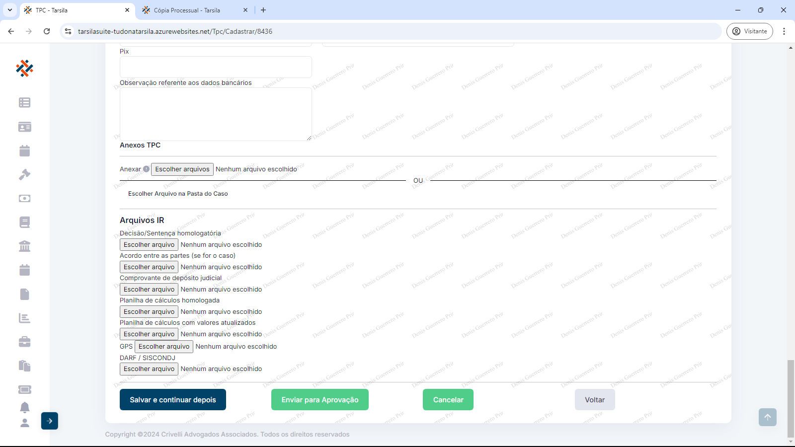 Finalizando, pode-se escolher entre as opções de “Salvar e continuar depois” ou “Enviar para Aprovação”.