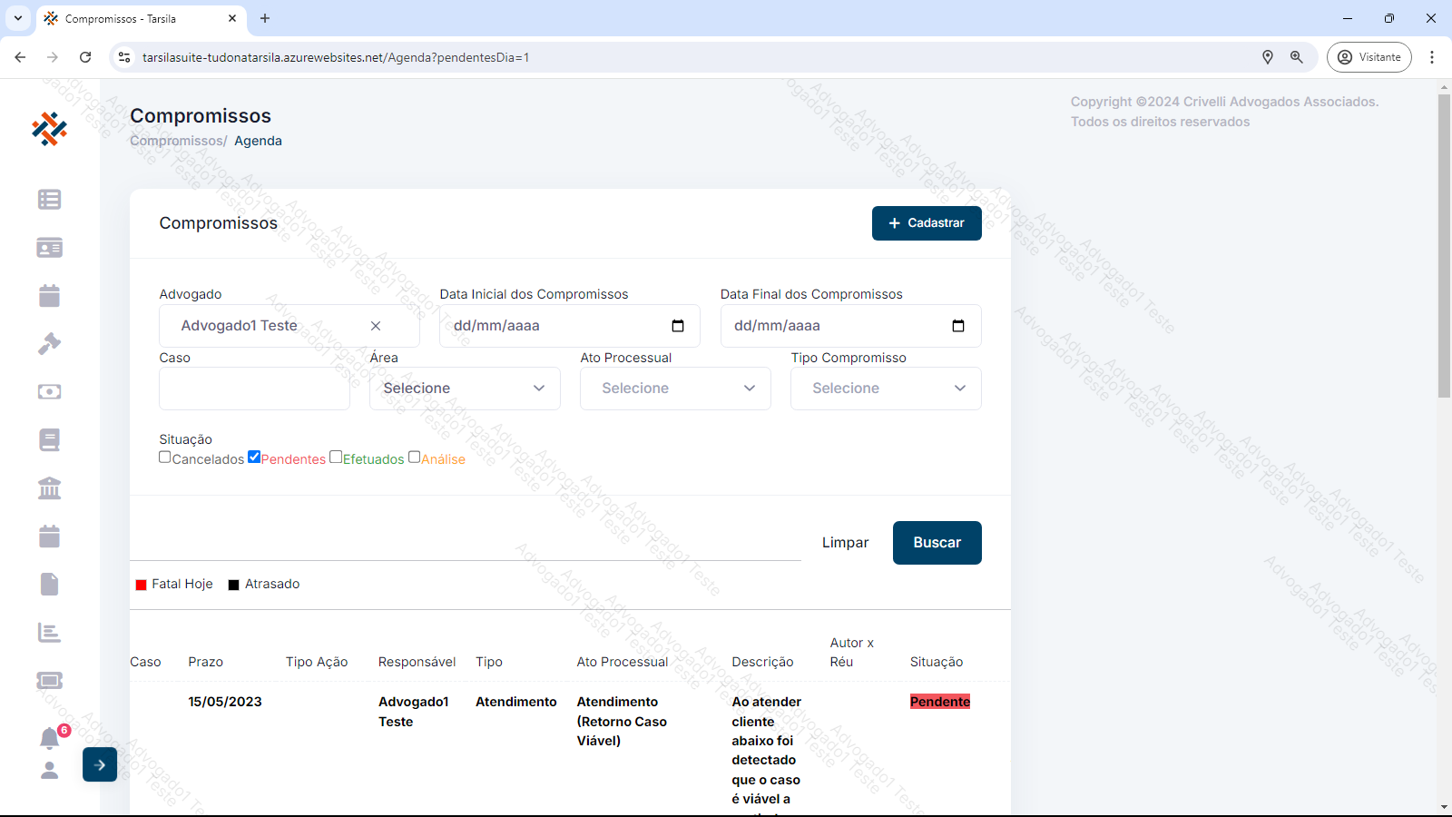 Como exemplo, no caso de houver Followups pendentes, será exibida uma caixa de diálogo com atalho para a aba de agenda (vide Item Aba Agenda/Compromissos).