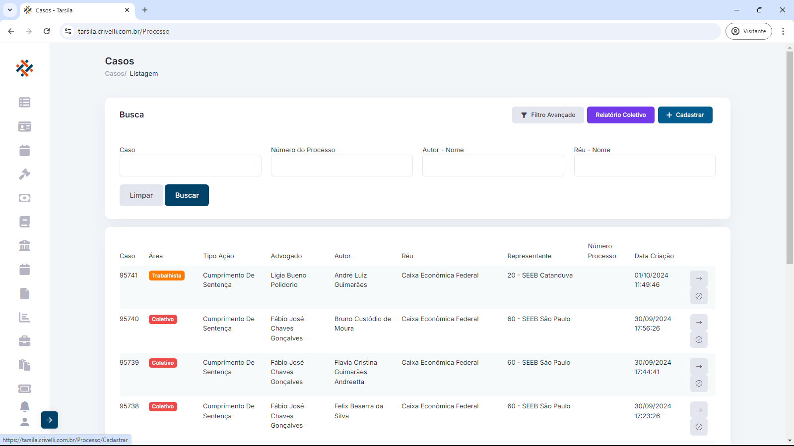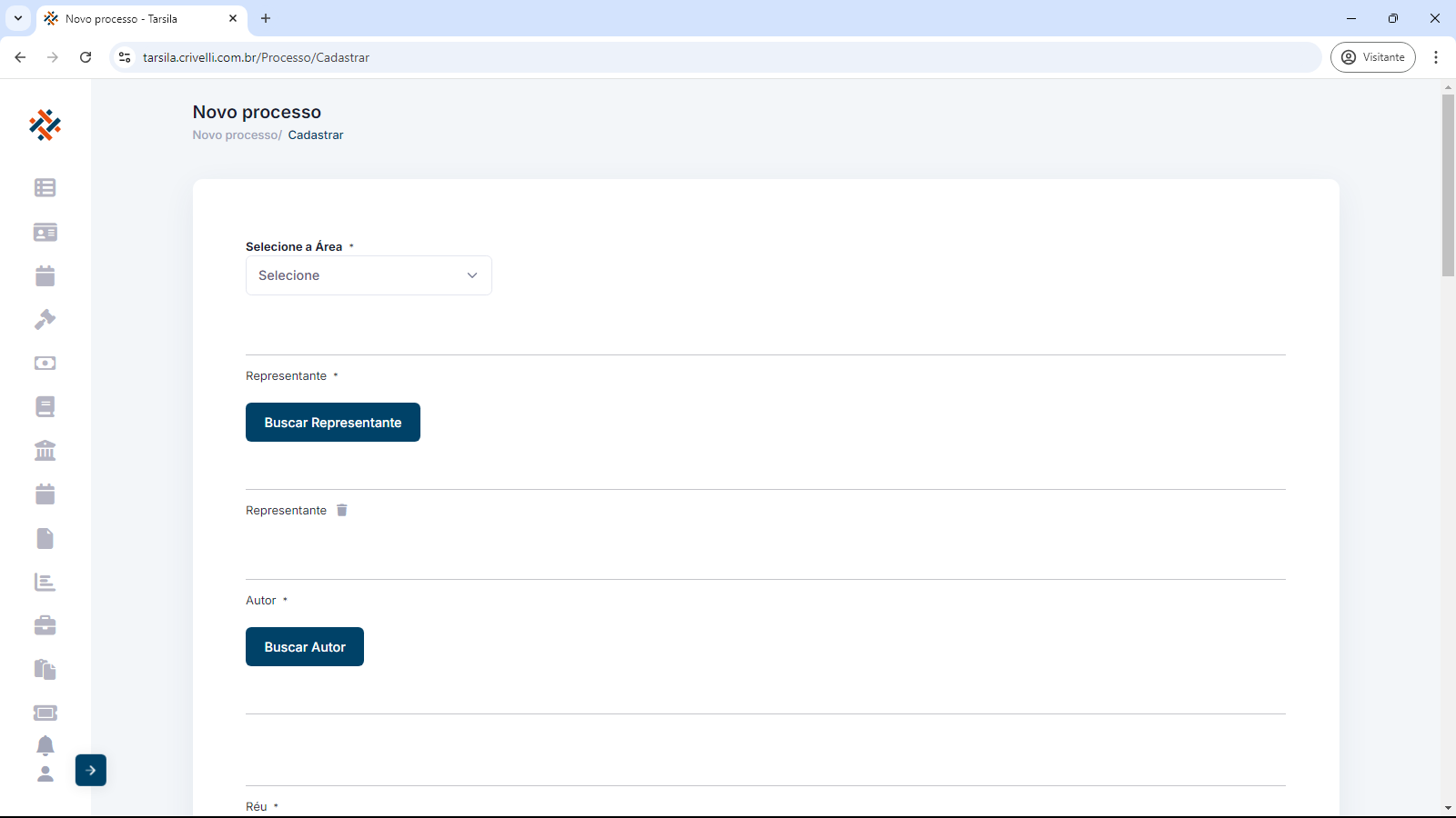 Em situações muito específicas em que não pode ser aplicado um atendimento, a abertura de novos processos pode ser realizada através do botão “+cadastrar” na tela de processos.