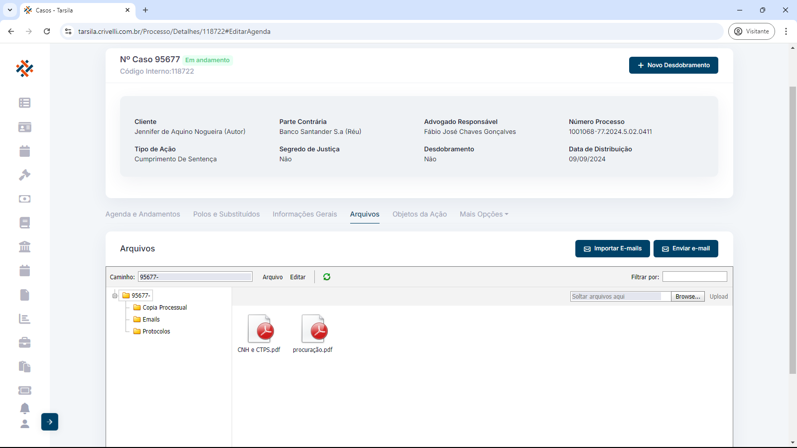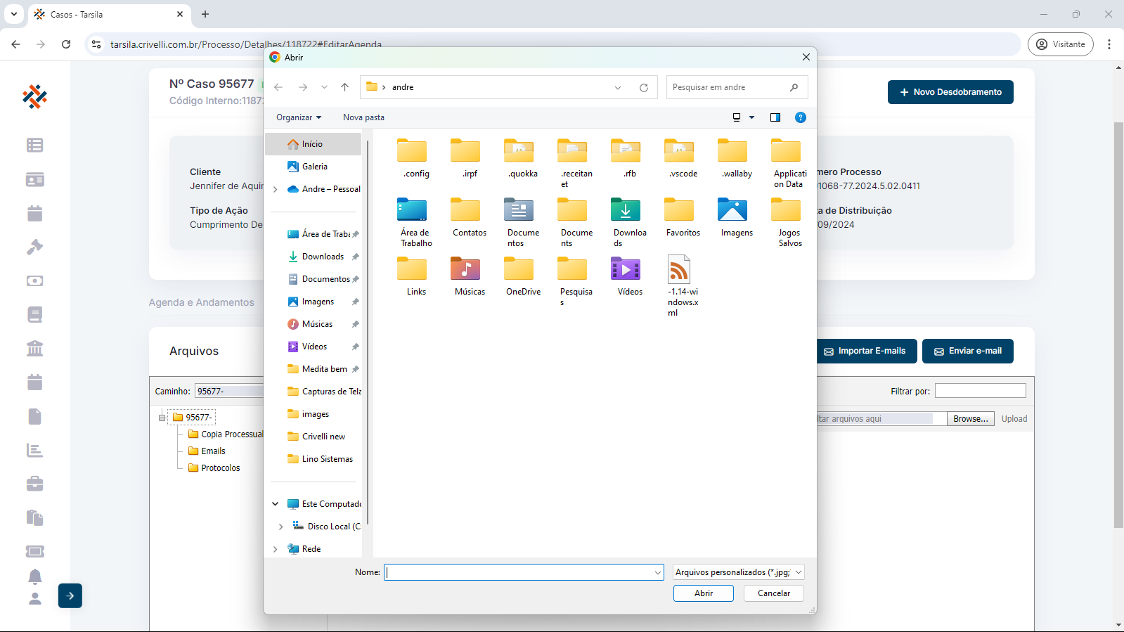 Por meio desta aba, pode-se anexar arquivos eletrônicos nas pastas abertas para complementar a documentação do processo/CCV. O botãoArquivos (ou Browse) abre a janela para inclusão dos arquivos.