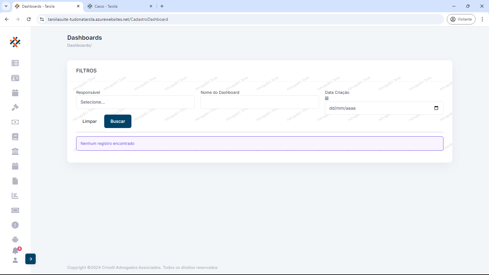 Aqui é exibido um conjunto customizado de gráficos e ou tabela, montados pela equipe de TI, para consulta de dados.